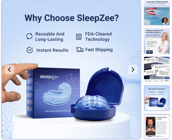 SleepZee is a medical-grade anti-snoring mouthpiece that gently repositions the lower jaw forward to keep your airways open, effectively preventing the blockage that causes snoring. Crafted from moldable, BPA and latex-free silicone using advanced boil-and-bite technology, it offers a customized fit tailored just for you. Experience immediate relief from the very first night—improving your sleep quality and bringing tranquility to your nights and those of your partner.